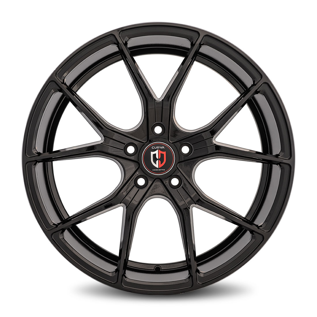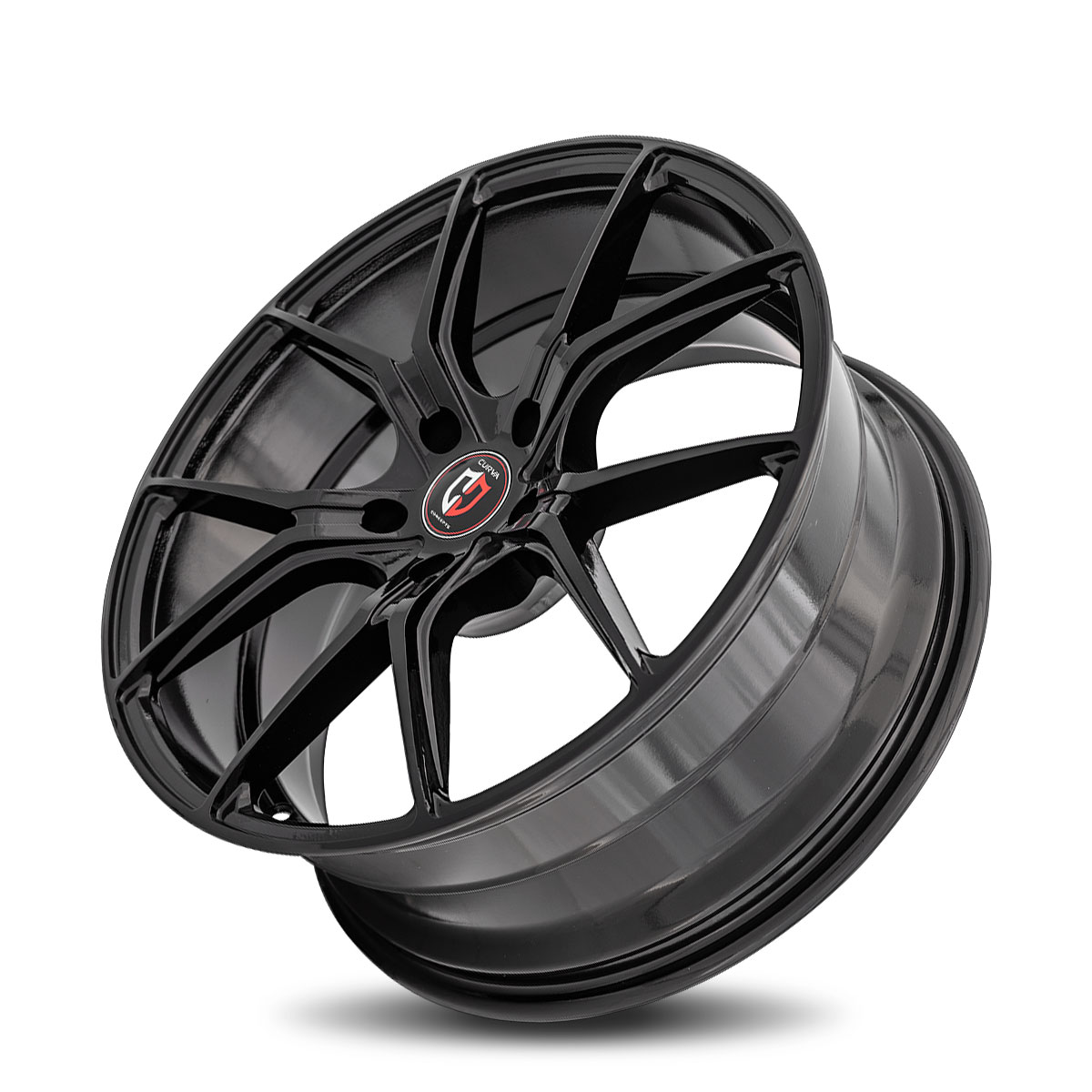 The Curva Concepts C42 is a 5 element split spoke wheel with a sporty and aggressive design. While the spokes are thin in appearance, they are very strong. The spokes curve outwards from the hub which improves brake caliper clearance better than most other wheels. The C42 pairs perfectly with modern muscle cars for an aggressive yet performance oriented stance.