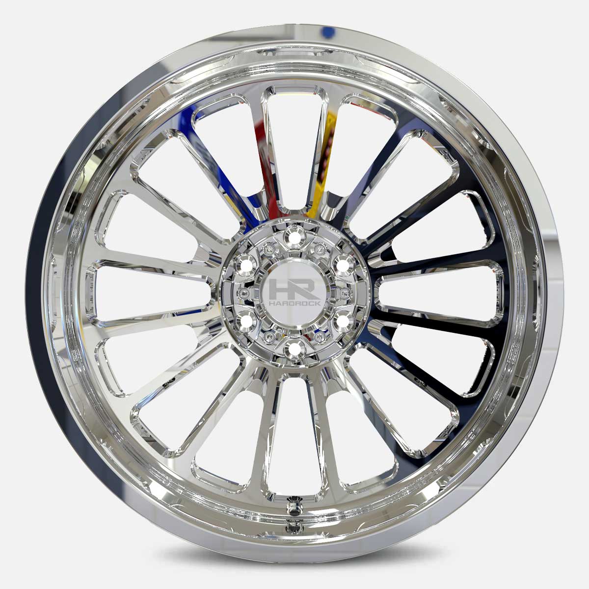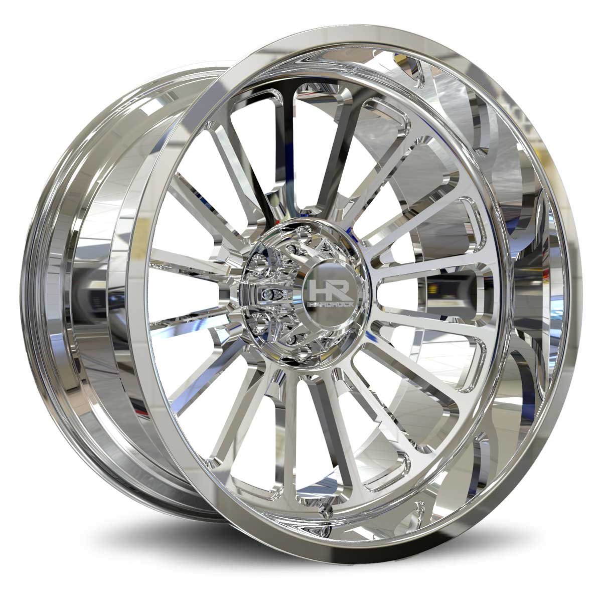 The Hardrock Offroad H913 truck wheel showcases a striking multi-spoke design from our forged line. The H913 features an elegant directional pattern with twelve slender spokes radiating from the center cap, creating a bold yet refined aesthetic. The deep-lip construction and finish deliver a stunning polish that makes a commanding statement. Also available in an 8-lug variant.