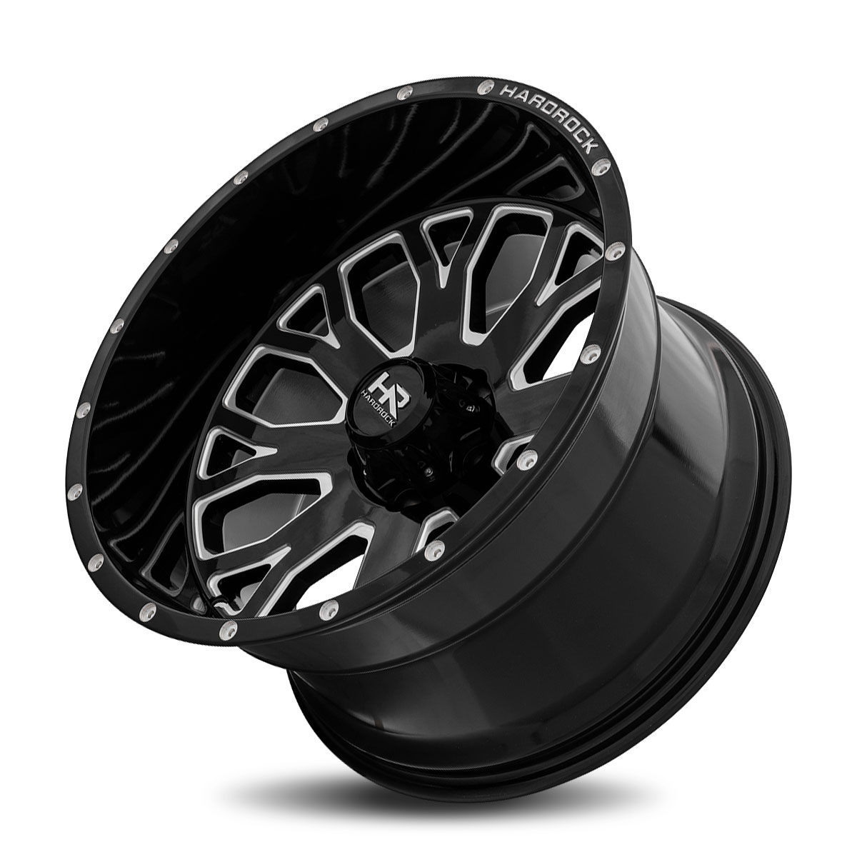 The Hardrock Offroad H504 Slammer XPosed wheel is an eight spoke wheel that splits the spoke just before the barrel. As a result, the distance between the surface that supports the barrel is reduced. This helps alleviate impact and directional stress on the barrel making it more stable than wheels with longer gaps between spokes. The wheel’s engineering creates an extremely solid form that creatively uses the branched openings to keep the wheel lighter at the barrel. Thus the H504 is better conditioned for extreme road conditions than normal eight spoke wheels.