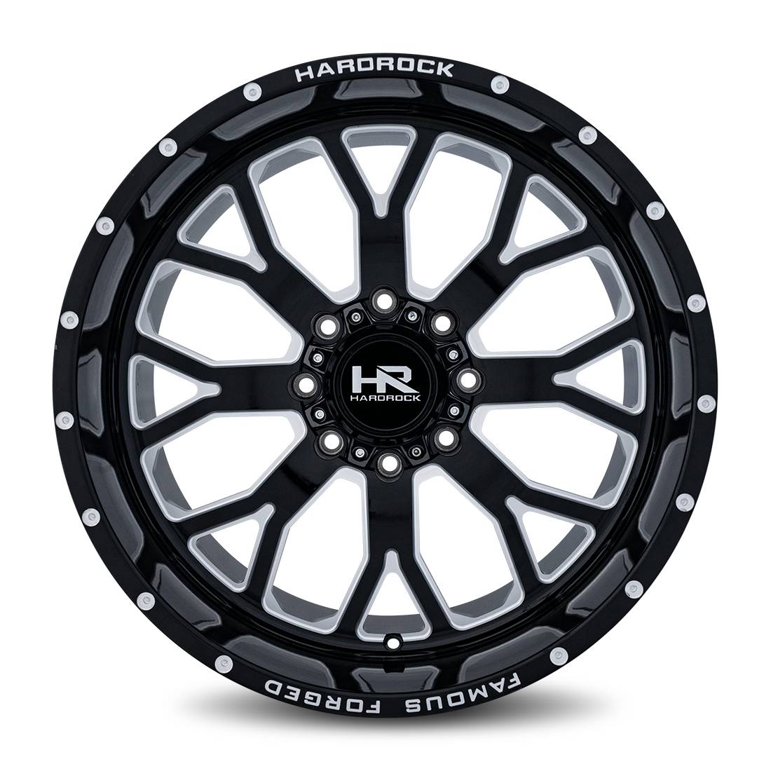 The Hardrock Offroad H801 Famous Forged wheels are carved out of compressed and hardened aluminum. This method of wheel creation allows for denser and stronger material. This translates to less material needed to create a cast version of a similar design. The Hardrock H504 is a similar wheel using the cast method. While very similar visually, the H801 has a thinner barrel and the rear of the spokes are shaved. The results are a lighter yet stronger wheel. Each H801 is an eight-spoke wheel that splits the span just before the barrel. The wheel’s engineering creates an extremely solid form that creatively uses the branched openings to keep the wheel lighter at the barrel.